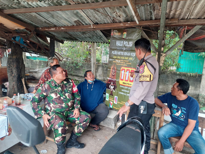 AIPTU Mintra(Bhabinkamtibmas Kel.Jatirahayu )dan Serda Yudo Sukmono Babinsa TNI.Sosialisasi dan himbauan bagi masyarakat yang di laksanakan di alamat tersebut di atas untuk melaporkan,memberikan informasi keluhan maupun pengaduan melalui Halo Polisi 110.