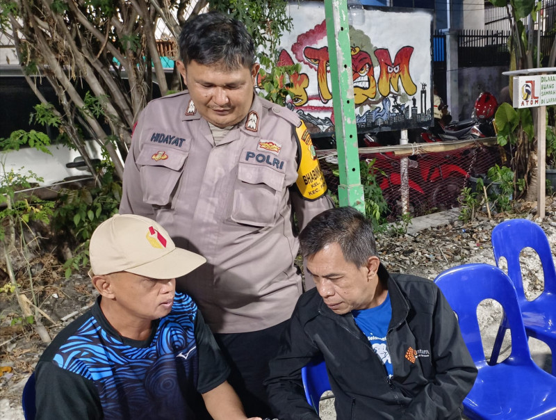 Para Bhabinkamtibmas Polres Metro Jakarta Utara berkesempatan bertemu dengan warga untuk berbincang mengenai masalah kamtibmas (keamanan dan ketertiban masyarakat).