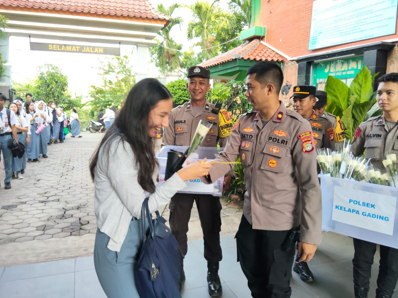 Jakarta, Media Budaya Indonesia. Com - Polsek Kelapa Gading menggelar kegiatan Empathy Building di empat sekolah SMA/SMK di wilayah Kecamatan Kelapa Gading pada Senin (17/11). Program ini diwujudkan melalui pembagian 800 bunga mawar putih dan 800 coklat kepada para siswa sebagai simbol pesan toleransi, kebersamaan, welas asih, serta penolakan terhadap kekerasan.
