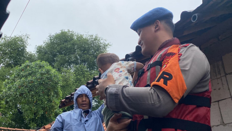 Brimob Polda Metro Jaya Sigap Evakuasi Warga Terdampak Banjir Kali Ulu Cikarang