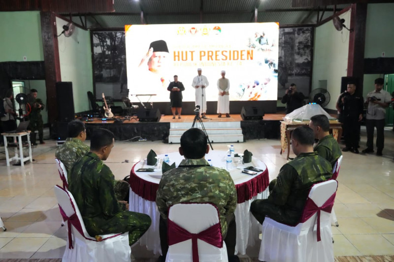 Sebagai ungkapan rasa syukur, dilaksanakan pemotongan tumpeng oleh Panglima TNI dan Menhan RI bersama para prajurit. Momen tersebut berlangsung hangat dan penuh makna, mencerminkan soliditas pimpinan dan prajurit TNI di medan tugas serta doa tulus bagi Presiden dan bangsa Indonesia.