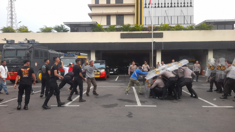 Simulasi penanggulangan unjuk rasa dimulai dengan penggambaran situasi demonstrasi yang berlangsung secara damai. Namun seiring waktu, massa berubah menjadi agresif dan anarkis, melempari petugas, mendorong barikade, dan mencoba menerobos masuk ke area terlarang.