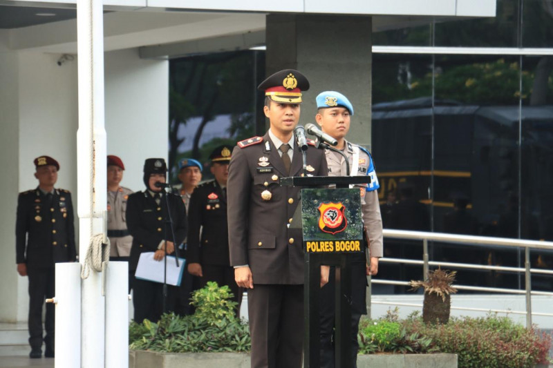 Peserta upacara terdiri dari berbagai personel Polres Bogor, termasuk perwakilan dari Pama, staf gabungan, Sat Samapta, Sat Lantas, Sat Narkoba, Sat Intelkam, Sat Reskrim, dan ASN Polres Bogor. Mereka mengikuti rangkaian kegiatan dengan penuh semangat dan kedisiplinan.