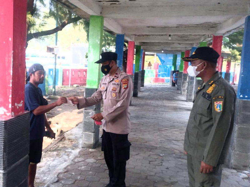 Cegah Covid-19, Polres Kep Seribu Bagikan 400 Masker dan Sampaikan Imbauhan Prokes Ke Warga