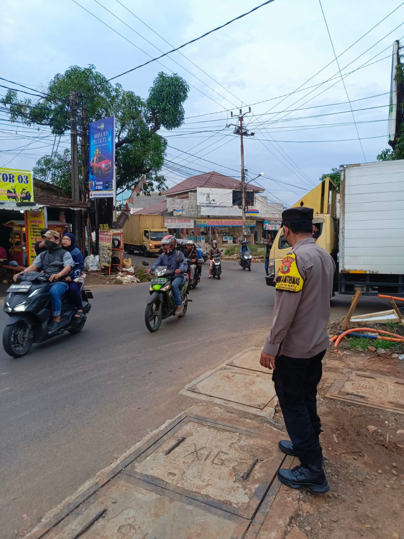 Hindari Kepadatan Jam Pulang Kerja, Unit Binmas Polsek Bantargebang Turun Gatur Lalin di Cimuning