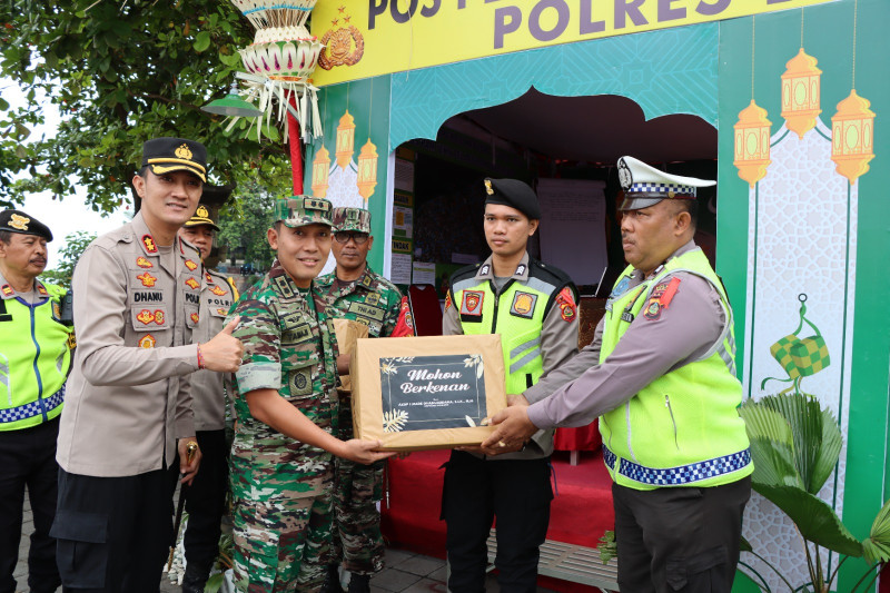 Kapolres Buleleng dan Dandim 1609/Buleleng menyerahkan bingkisan di setiap pos yang dikunjungi.