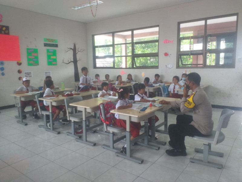 Polres Kepulauan Seribu melalui anggota Bhabinkamtibmas Pulau Panggang, Polsek Kepulauan Seribu Utara, Polres Kepulauan Seribu Btipka Suhendi melaksanakan kegiatan Police Goes to School di SDN 03 Pagi Pulau Panggang , Senin (21/11/2022).