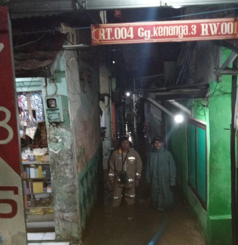 Kegiatan yang dimulai pukul 19.30 WIB ini difokuskan di Jalan Pangeran Jayakarta, khususnya pada lingkungan RW 01 dan RW 08. Bhabinkamtibmas Kelurahan Harapan Mulya, Bripka Yophi Prima, S.H., bersama Babinsa Serka Susilo, meninjau langsung kondisi lapangan pasca hujan deras yang mengakibatkan genangan di ruas jalan utama tersebut.