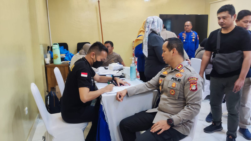 Jakarta, Kamis (22/06/2023) - Polres Kepulauan Seribu menyelenggarakan kegiatan Donor Darah Bakti Kesehatan dalam rangka memperingati Hari Bhayangkara yang ke-77. Acara ini berlangsung di Aula Wicaksana Laghawa Polres Kepulauan Seribu dan diikuti oleh sebanyak 102 anggota Polres Kepulauan Seribu beserta Bhayangkari.Kamis (22/6/2023).