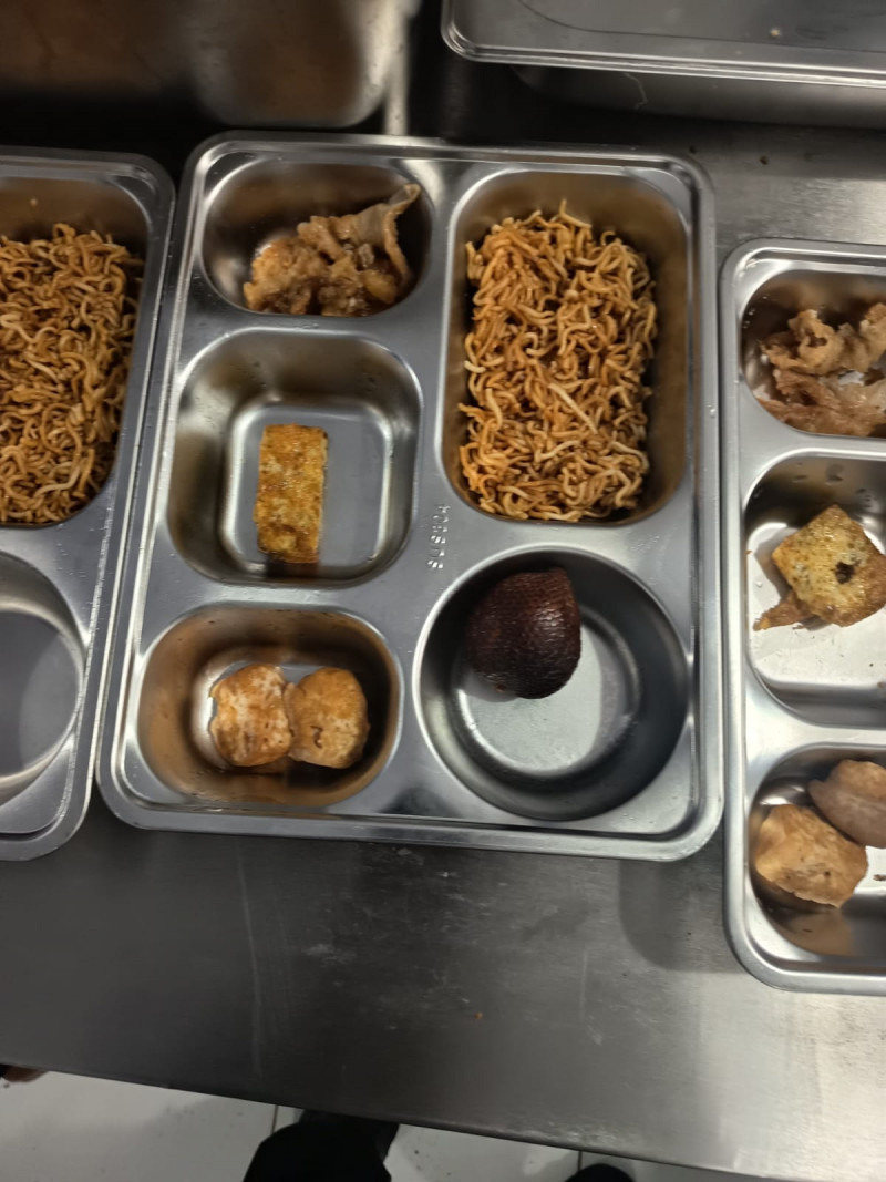 Pada hari ini, menu yang dibagikan meliputi mie goreng, telur kukus goreng, tahu goreng, sayur rebus, dan buah salak. Distribusi dilakukan dua kali, yaitu pukul 07.00 WIB dan pukul 10.00 WIB, untuk memastikan semua penerima mendapatkan jatah secara merata.