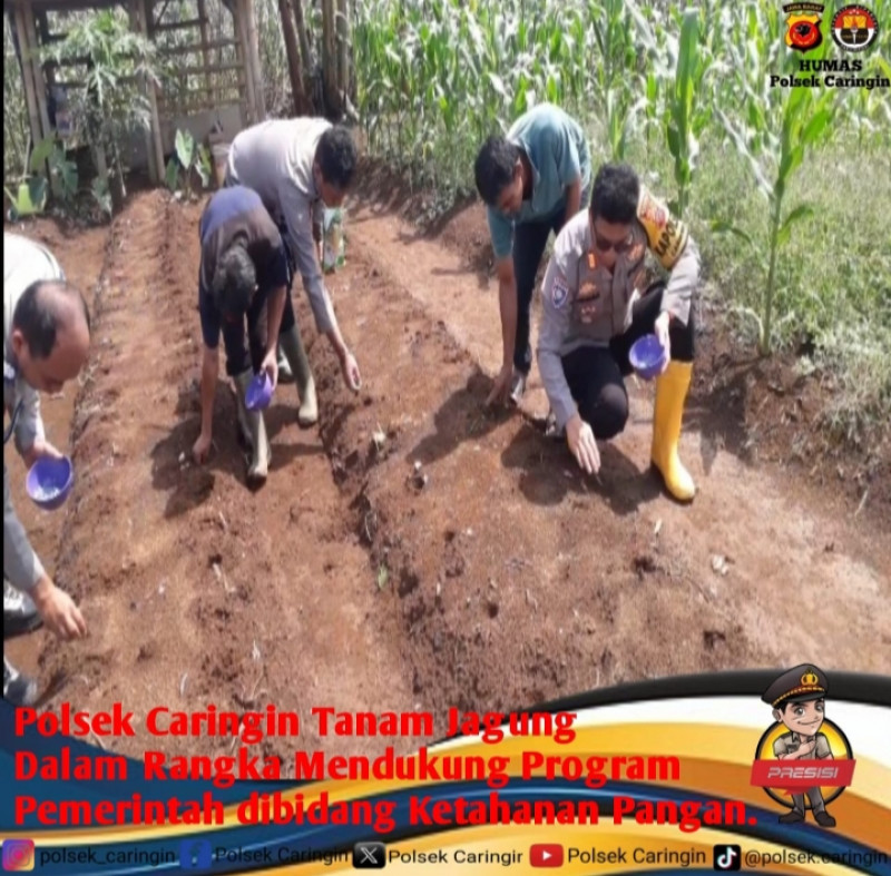 Penanaman jagung ini dilakukan oleh Kapolsek Caringin Akp Hendra Kurnia, SH,.MM dan Personil Polsek Caringin, kegiatan ini merupakan bentuk kepedulian Polri dalam menciptakan ketahanan pangan.