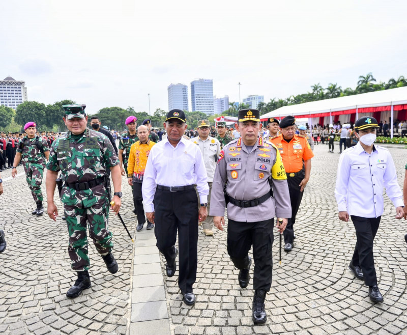Jakarta l Media Budaya Indonesia.com - Pemerintah, TNI, Polri dan stakeholder terkait lainnya menggelar Apel Gelar Pasukan Operasi Lilin 2022 terkait pengamanan perayaan Natal dan Tahun Baru (Nataru) di Lapangan Monas, Jakarta, Kamis, 22 Desember 2022.