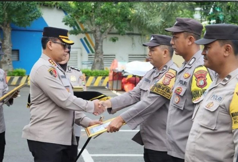 Anggota personil Polres Metro Jakarta Utara mendapatkan penghargaan dari Kapolres Metro Jakarta Utara Kombes Pol Gidion Arif Setyawan, S.I.K., S.H.M.Hum.