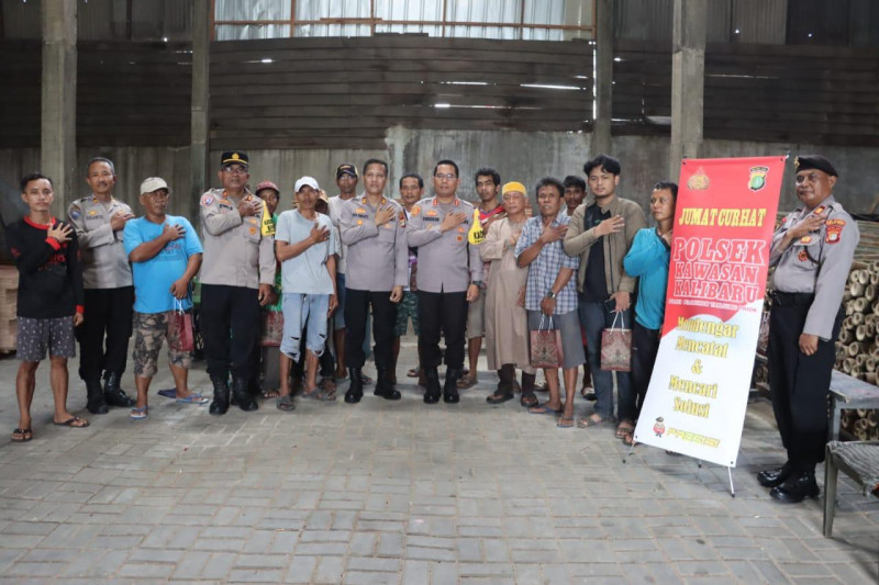 Jakarta, Media Budaya Indonesia.Com - Polres Pelabuhan Tanjung Priok menggelar kegiatan Jumat Curhat kali ini di Gudang Kayu Pelabuhan Kalibaru, dengan maksud tujuan untuk berdialog dengan para tokoh masyarakat dan para buruh yang melakukan kegiatan bongkar muat kayu. Kegiatan yang dipimpin langsung oleh Kapolres Pelabuhan Tanjung Priok AKBP Ferikson Tampubolon, S.I.K., M.H., didampingi oleh AKP Dwi Saksana S.H Kasat Binmas Polres Pelabuhan Tanjung Priok, Plt. Kapolsek Kawasan Kalibaru AKP Devi Yanuarto, S.H, (Jumat,22/03/2024).