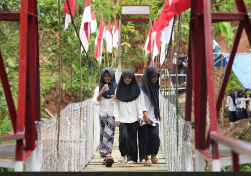 Laela mengatakan jembatan gantung ini juga sangat bermanfaat untuk akses pendidikan karena di kedua desa berbeda kabupaten ini terdapat banyak sekolah, mulai dari pendidikan anak usia dini (PAUD), SD, SMP, hingga SMK.