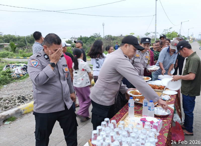 Menjelang waktu Magrib, jajaran kepolisian bersama warga melaksanakan buka puasa bersama dalam suasana kebersamaan. Kegiatan berlangsung sederhana namun penuh keakraban, mencerminkan pendekatan humanis kepolisian dalam menjaga hubungan dengan masyarakat.