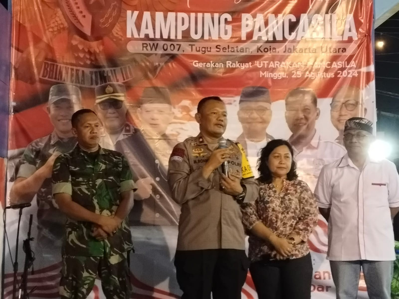 Jakarta, Media Budaya Indonesia.Com - Kapolsek Koja Polres Metro Jakarta Utara Kompol Muhammad Syahroni, SH,M.Si, didampingi Kanit Binmas AKP Slamet Radjiman dan jajaran personil Polsek Koja menghadiri peresmian Kampung Tugu Pancasila RW 07 kelurahan Tugu Selatan kecamatan Koja Jakarta Utara, Minggu (25/8/2024).