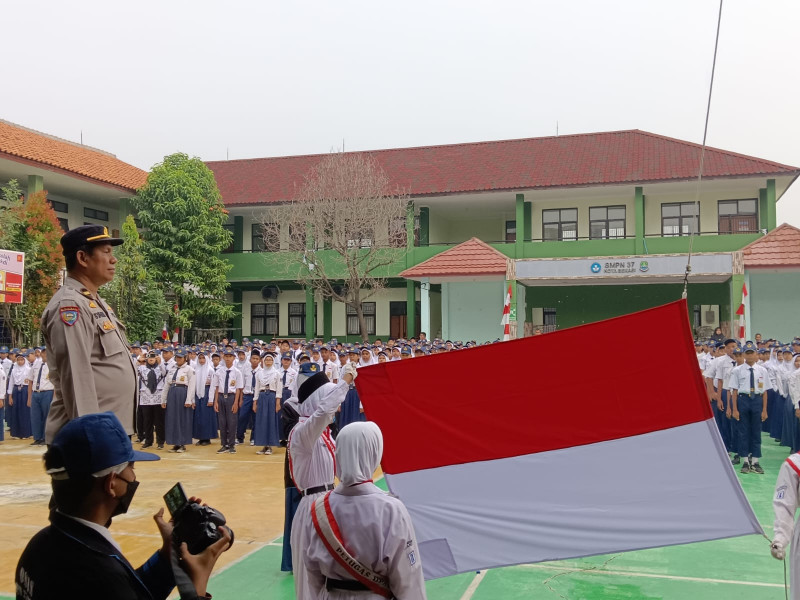 Kota Bekasi, Media Budaya Indonesia. Com - Pada Senin 25 Agustus 2025 bertempat di SMP Negeri 37 Kota Bekasi Jl Padi Raya Rt 4/29 Perum Deptan Kel. Kaliabang Tengah Kec. Bekasi Utara. Bhabinkamtibmas Kel.Kaliabang Tengah Kec. Bekasi Utara Aiptu Mulyadi Mendampingi Panit Bimas Ipda Syahrir, SE. Kegiatan Upacara Bendera di SMP Negeri 37 Kota Bekasi.