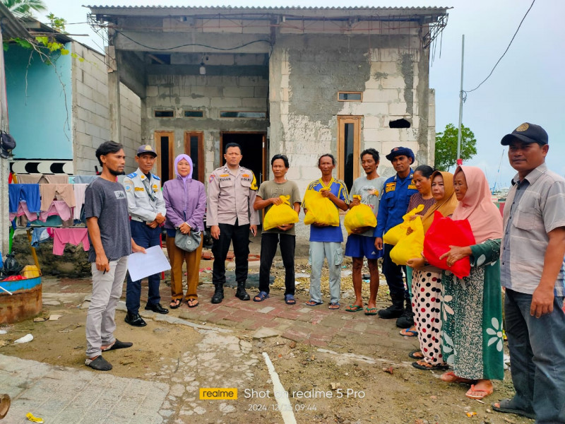 Bhabinkamtibmas Pulau Lancang Bersama Tim Gabungan Salurkan Sembako untuk Korban Banjir Rob