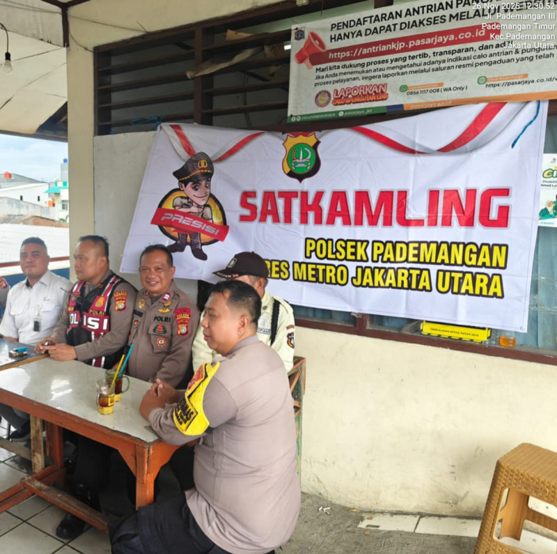Kegiatan yang berlangsung sekitar pukul 12.20 WIB itu dipimpin oleh Kanit Samapta Iptu Mansyur, bersama Kapolsubsektor Pademangan Timur Aiptu Apollonius dan Bhabinkamtibmas Aipda Novi Setiyawan. Kehadiran petugas disambut baik oleh pihak pengelola pasar dan petugas keamanan setempat.