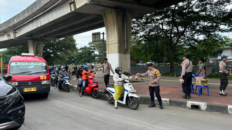 Polisi Bagikan Takjil kepada Pengguna Jalan di Plumpang, Wujud Kepedulian Polsek Koja di Bulan Ramadan