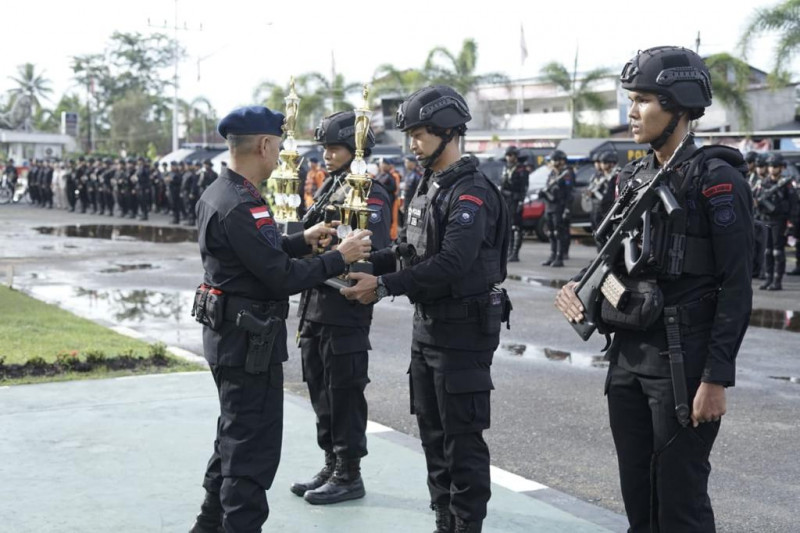 Dansatbrimob Polda Kalbar Berikan Penghargaan Kepada Personel Yang Berprestasi