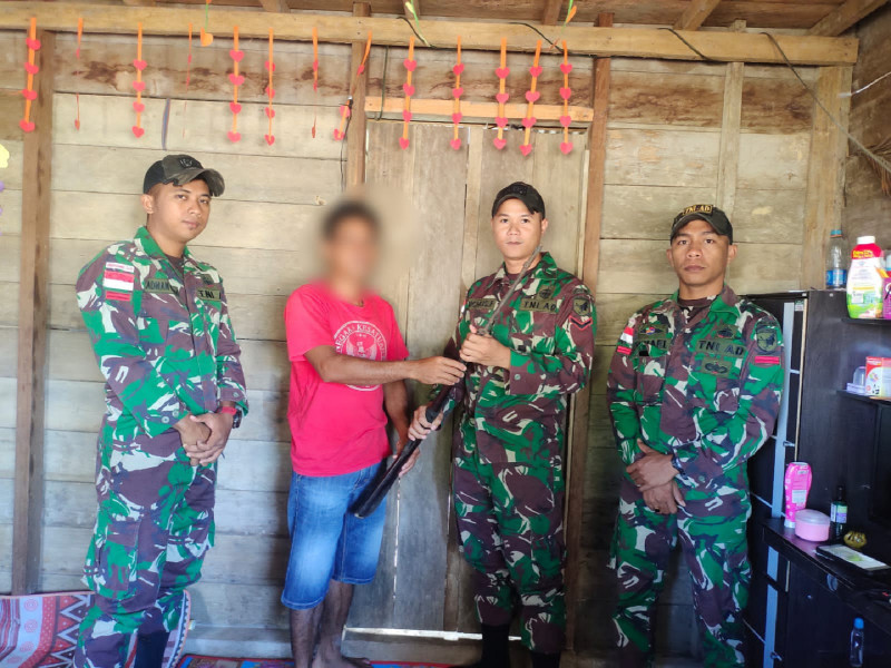 Berkah Ramadhan, Satgas Pamtas Yonif 645/GTY Kembali Terima Senpi Rakitan dari Warga Perbatasan