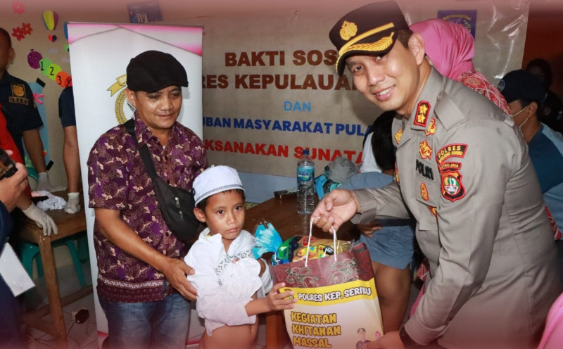 Sambut HUT Bhayangkara Ke-77: Polres Kepulauan Seribu Gelar Sunatan Massal di Pulau Lancang