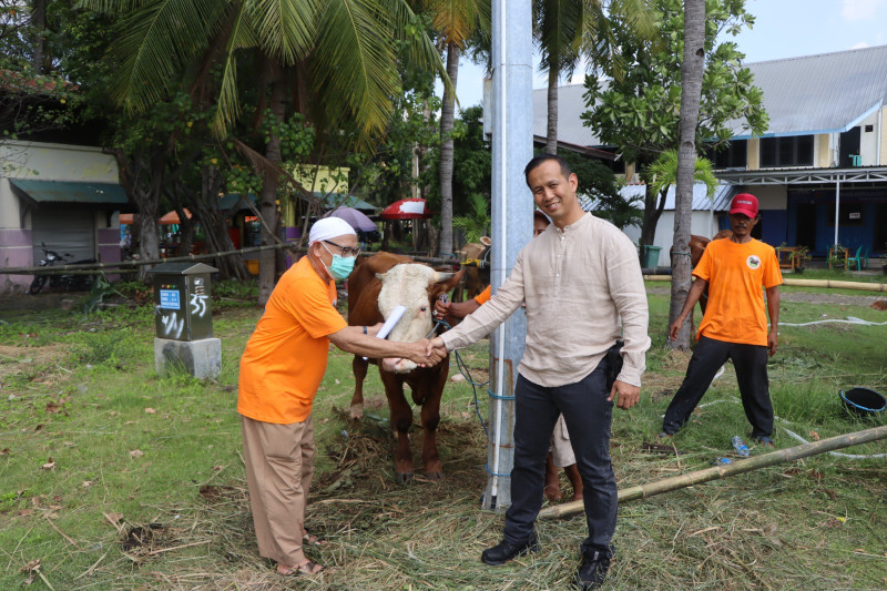 Kapolres Kepulauan Seribu, AKBP Ary Sudradjat, S.H., S.I.K., M.H., secara simbolis menyerahkan hewan qurban yang akan dipotong kepada panitia pelaksana dari berbagai elemen masyarakat Kepulauan Seribu. Hewan-hewan qurban tersebut kemudian akan dipotong dan dagingnya akan dibagikan kepada masyarakat di wilayah hukum Polres Kepulauan Seribu.