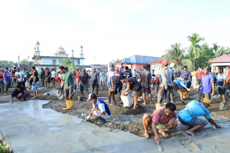 Semangat Kebersamaan, Satgas TMMD dan Warga Desa Wama Bahu Membahu Cor Lapangan Voli