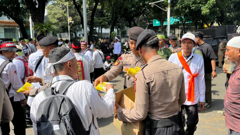 Dalam suasana yang tenang dan penuh kekeluargaan, petugas kepolisian juga tampak membagikan air mineral dan roti kepada peserta aksi. Menurut Susatyo, hal itu merupakan bentuk nyata pelayanan humanis Polri kepada masyarakat.