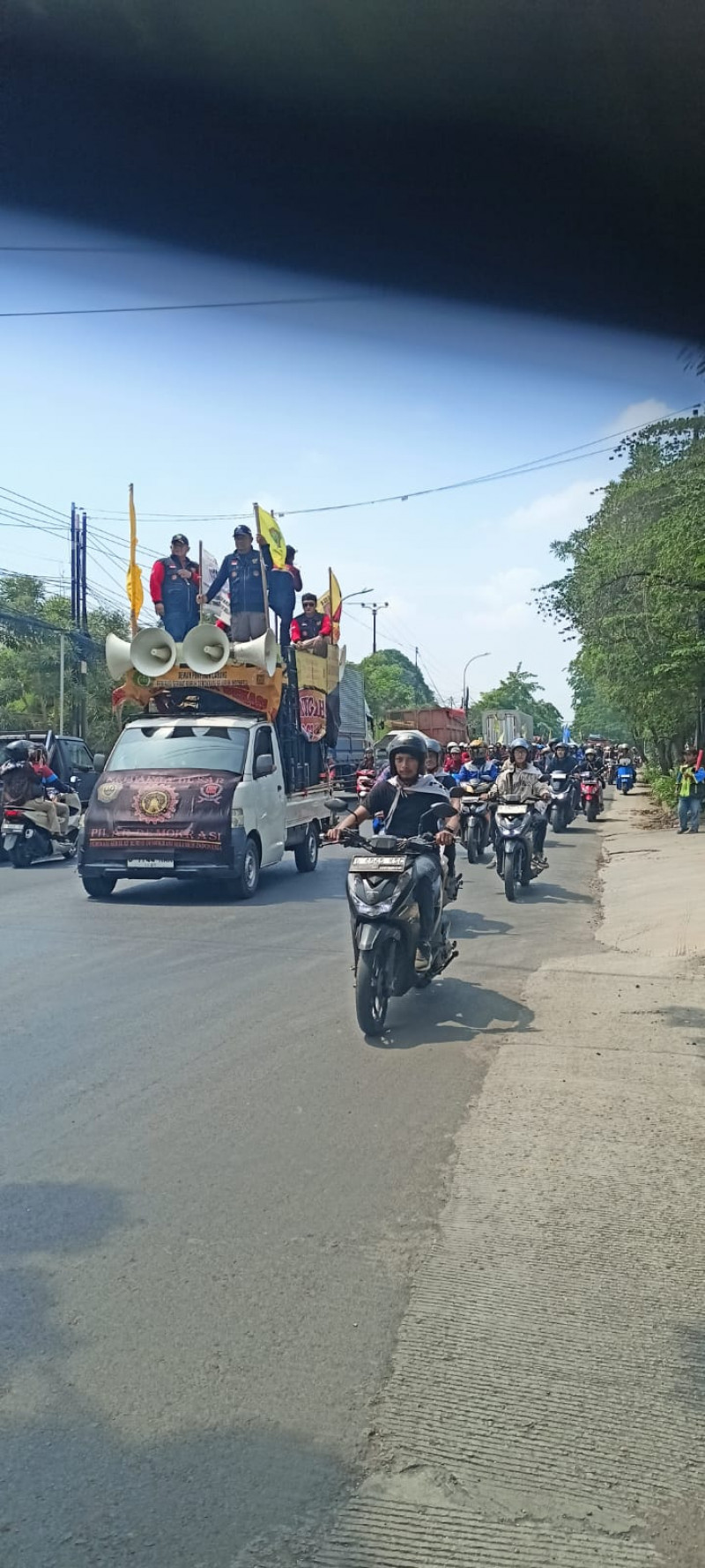 "Keberangkatan massa SP/Buruh yang berangkat ke Pemkot Bekasi dari Wilkum Polsek Bantar Gebang, situasi terpantau aman dan terkendali," pungkas Kompol Sukadi.