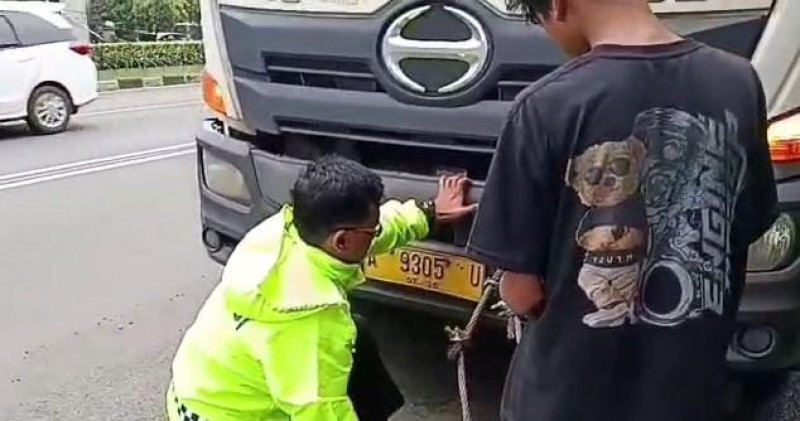 Polantas Bekasi Kota Sigap Bantu Evakuasi Trailer Mogok di Jalan Ahmad Yani